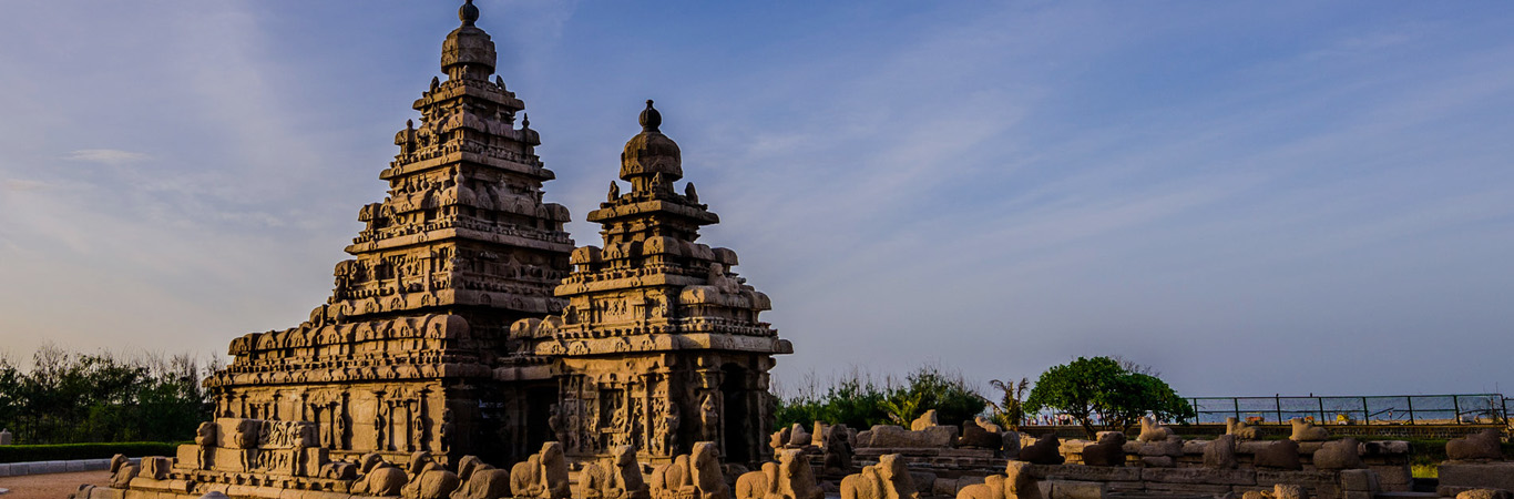 Chennai - Kanchipuram - Mamallapuram Later continue drive to Mamallapuram. Upon arrival check into the hotel. After fresh-n-up we will proceed sightseeing around Mamallapuram, the ancient port of Pallavas. The pallavas have created many marvellous monuments with sculptural panels, caves, Monolithic Rathas and Temples. Krishna Mandapam has a big bas relief, notable for its realistic representation. The world's largest bas relief measuring 27m x 9m, whale back shaped rock contains figures of gods, demi-gods, men beasts, birds and representation of the entire creation. Shore Temple, one of the oldest in south dating back to 8th century AD is a good example of the first phase of structural temples constructed in Dravidian style. The Five Rathas are a group of five monolithic temples, each created in different style. In the evening transfer to the hotel for overnight stay.